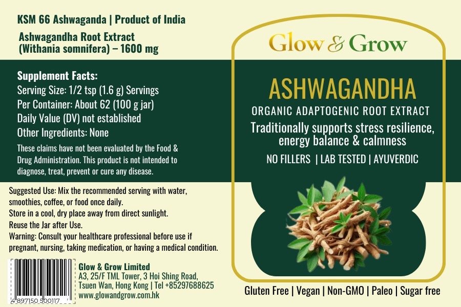 Ingredients Ashwagandha (Withania somnifera) root powder — standardized to 5% withanolides.